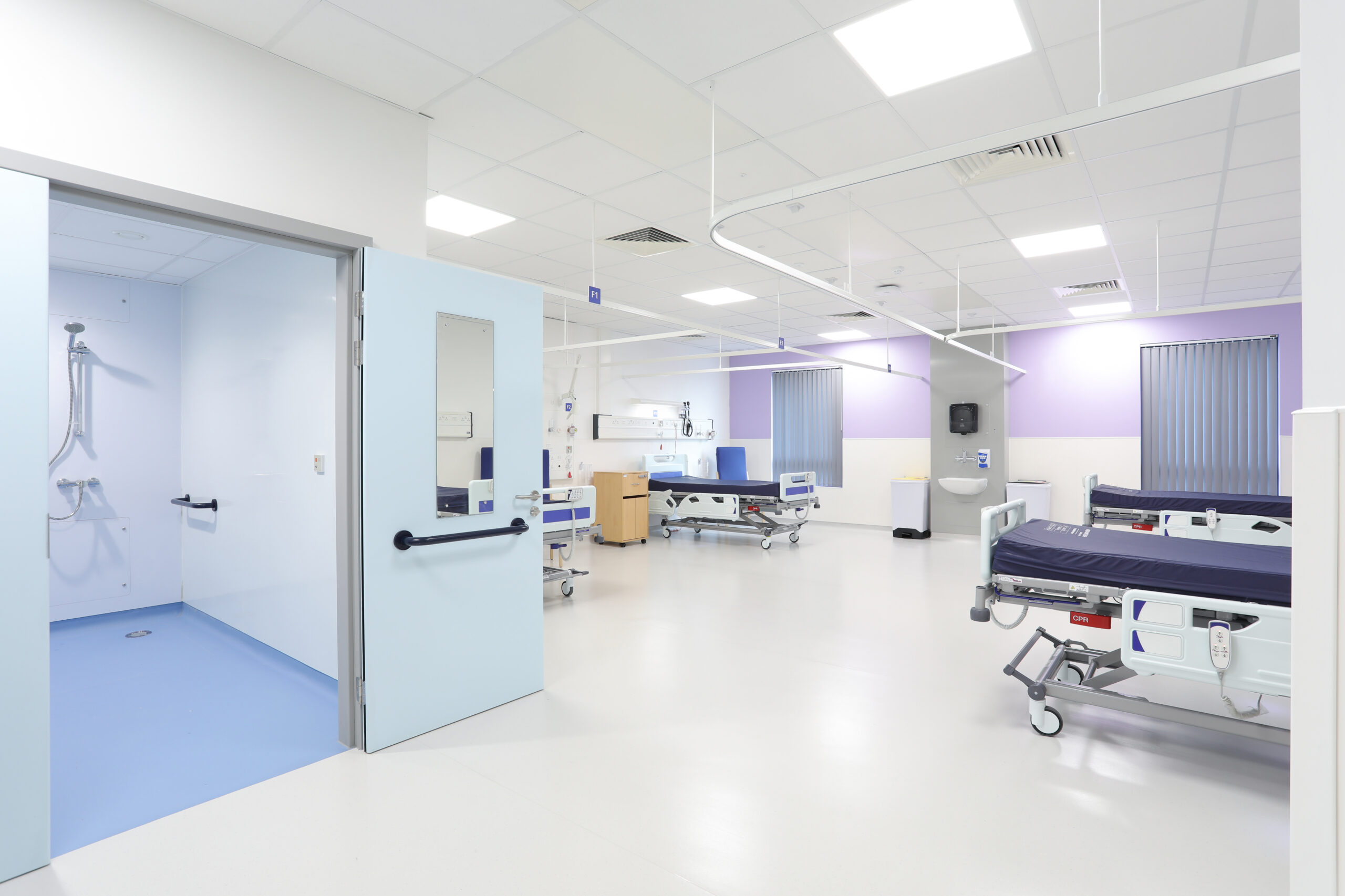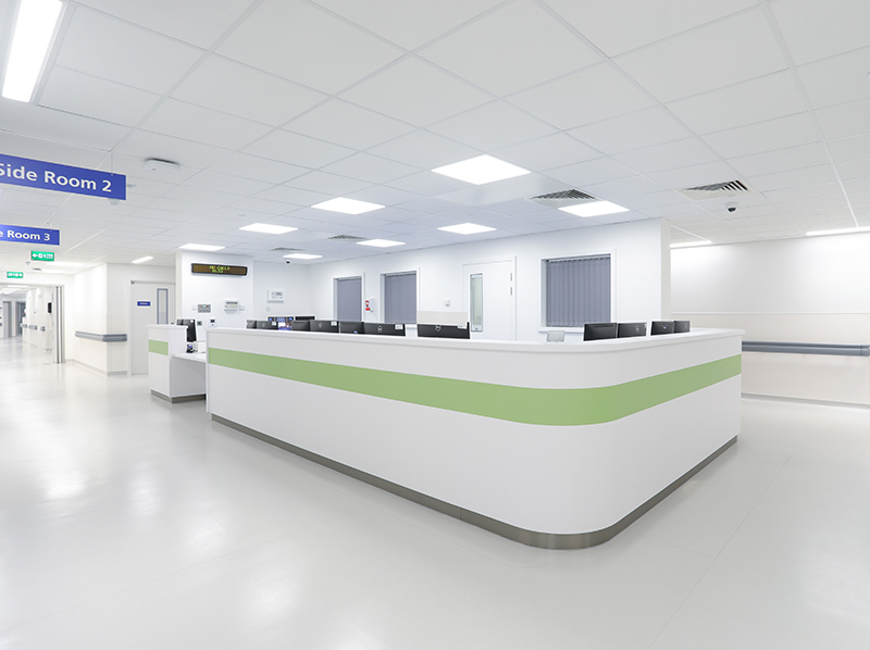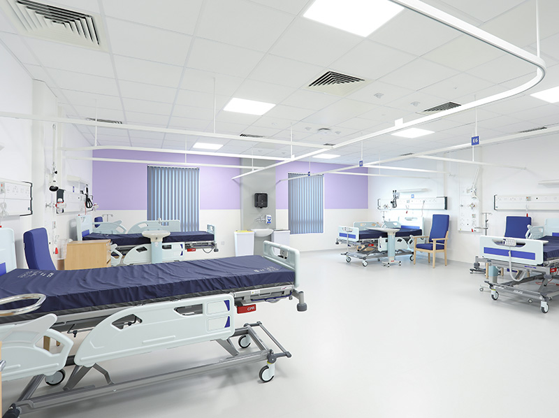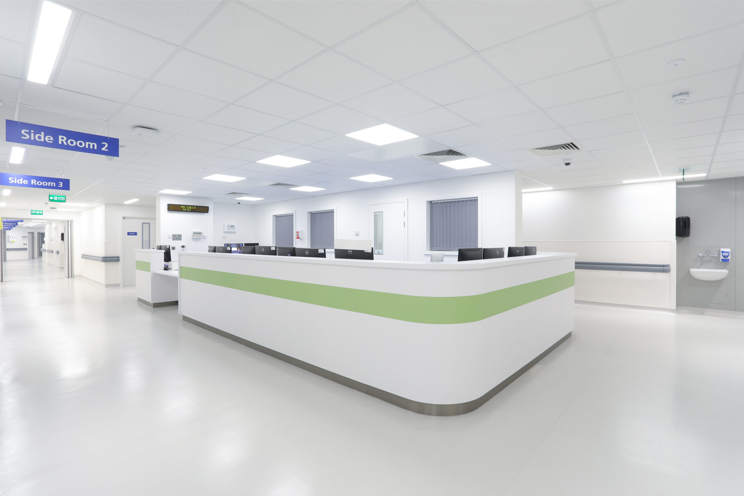 The ward extension was built on a steel deck supported by existing A&E columns. A 20m link corridor was suspended between the new facility and the main hospital to streamline clinical connectivity.
