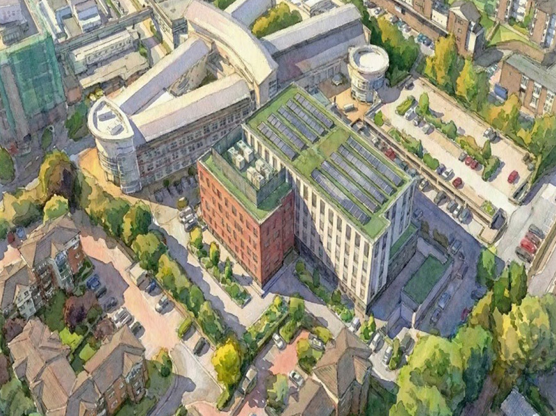 The overall building provides 14,496 m² of clinical accommodation and plant and has planning approval.